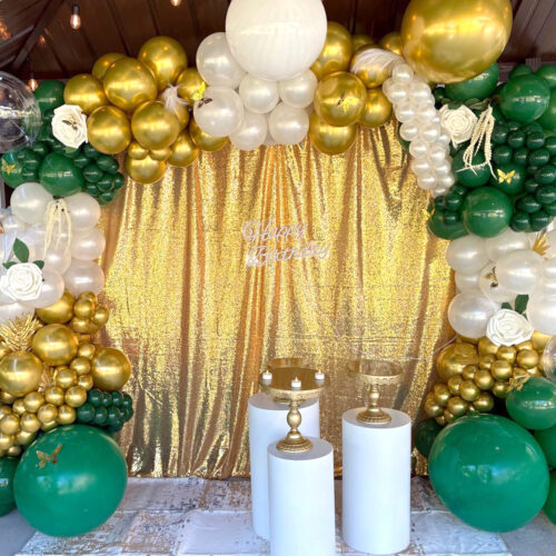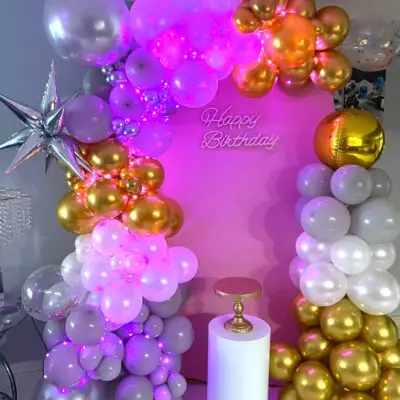 Transforma tu evento con globos y fondos elegantes que impactarán a todos tus invitados.